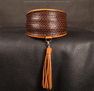Se ami i pellami stampati rettile, questa sarà la tua serie preferita. Morbida nappa sulla base del collare e stampati rettile sulla parte frontale.